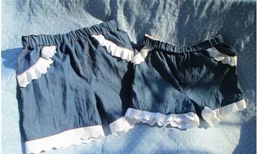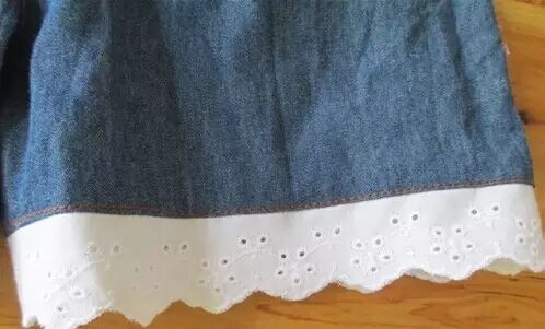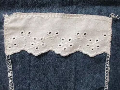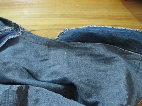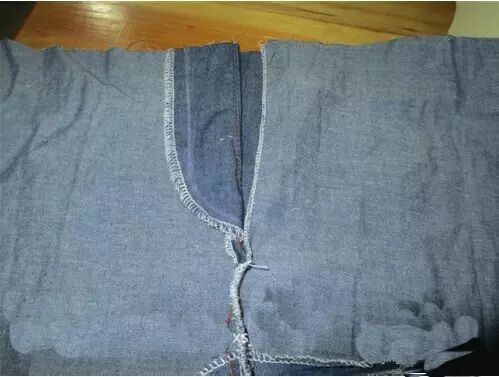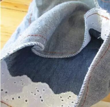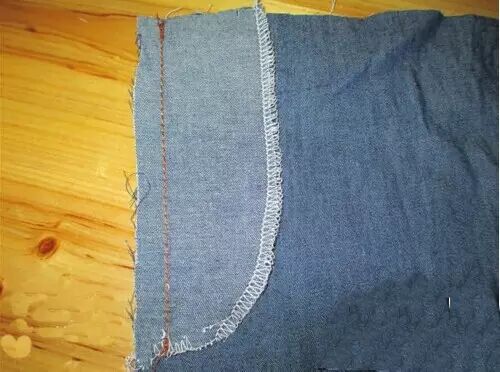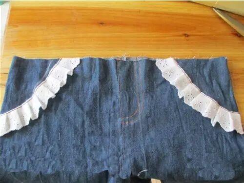 13、缝裤脚口装饰花边,缝好以后锁边。