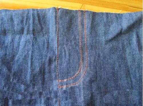 4、在后片适当位置画好口袋位,再将口袋如图缝合。