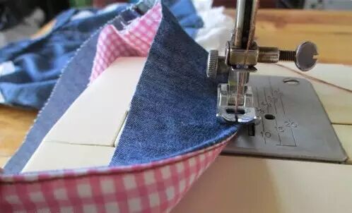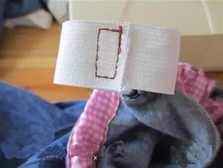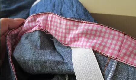 18、穿松紧,再将松紧两头缝合,最后把腰部预留的口子压线。
